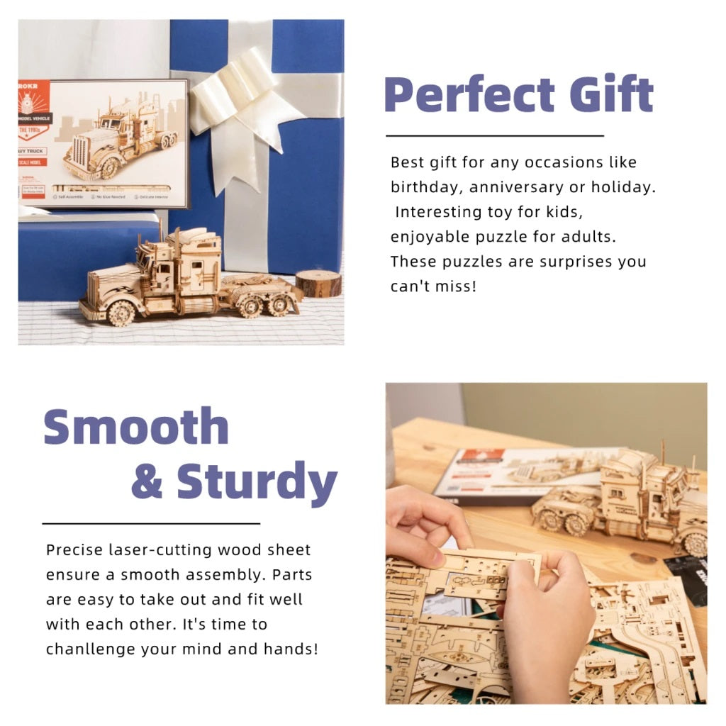 Robotime 3D Wooden DIY Model 1:40 Puzzle Mechanical Gear Kit Heavy Truck MC502