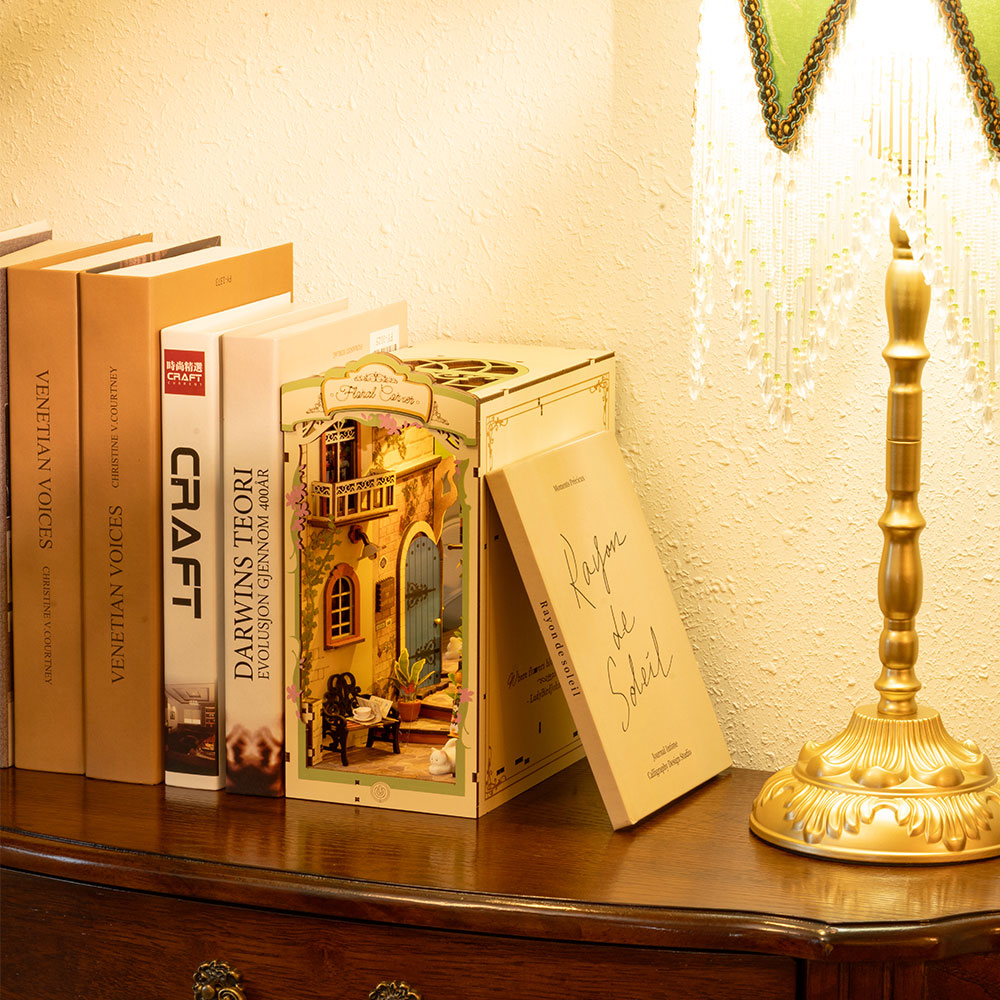 Robotime Rolife ROKR Floral Corner DIY Book Nook Shelf Insert Kit TGB09
