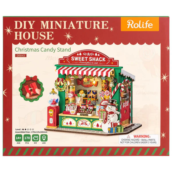 Unwrap the magic of the holidays with the Robotime Christmas Candy Stand DIY 3D Wooden Puzzle (DS043)! This enchanting model kit for adults lets you build a festive, musical candy stand complete with warm LED lights, creating a stunning centerpiece for your Christmas village or holiday decor.